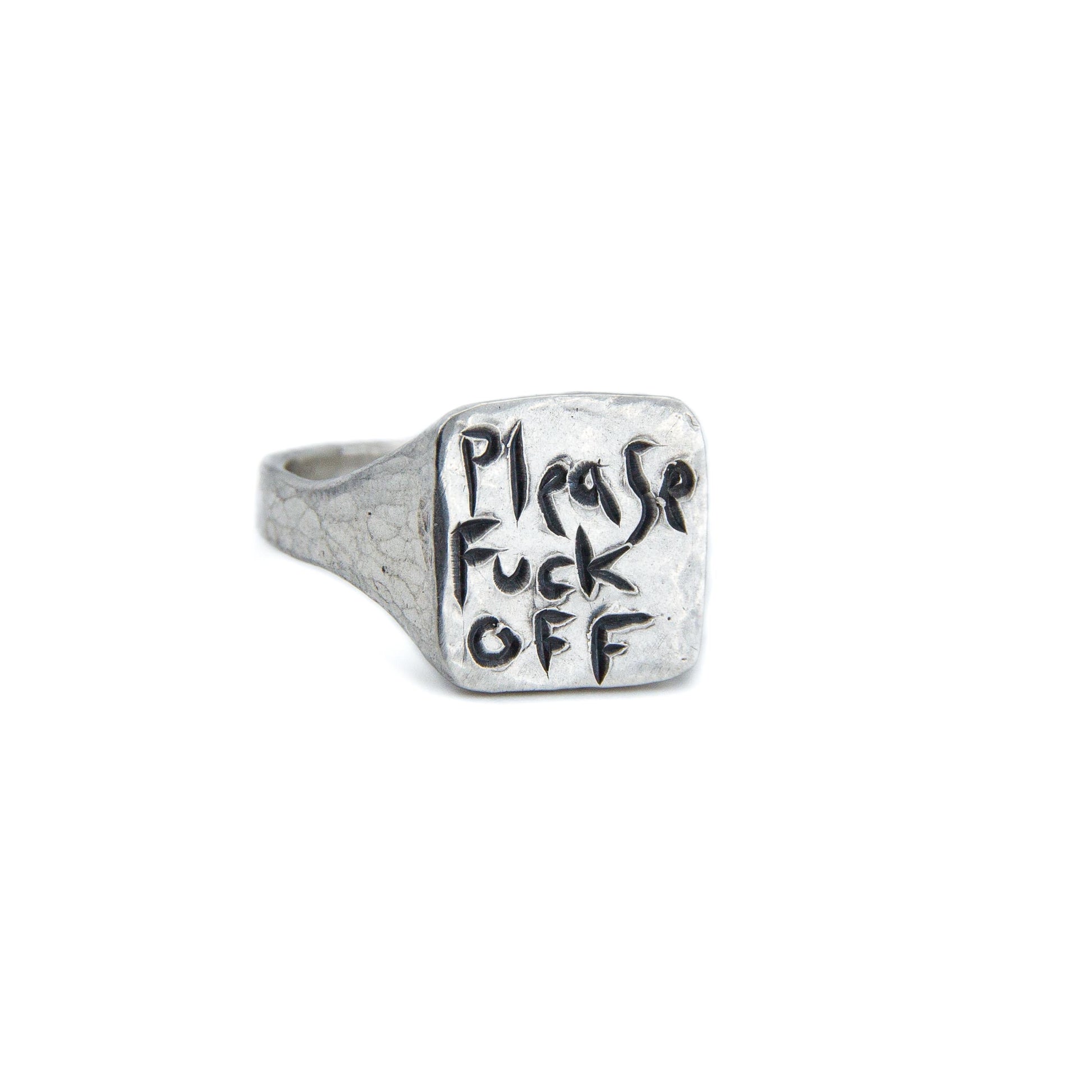 Die Domestizierung des inneren Tieres, der Wut, der Rage, ist ein Anliegen, das Menschen seit jeher eint. Beim Behämmern und Bearbeiten des Ringes wird die Aggression kanalisiert. Diese entladene Energie des Körpers und des Geistes überträgt sich auf das Material, ursprünglich Ausschussware und nun Gezeichnete der Resultate des Energietransfers. Der Ringrohling dient der kontrollierten emotionalen Entladung der Aggression. Der Energietransfer besänftigt Regina Rupp und Julian Arayapong die für diese Arbeit kooperierten. Beschimpfungen verlieren ihre schneidende Schärfe in der Abstraktion. Die Entfremdung des traditionell noblen Materials und Form zur Wut- und Stressbewältigung reiht sich ein in einen längerwierigen Prozess der Neuentdeckung und des Spieles de Künstler*innen mit Standesdünkel und Symbolobjekt.